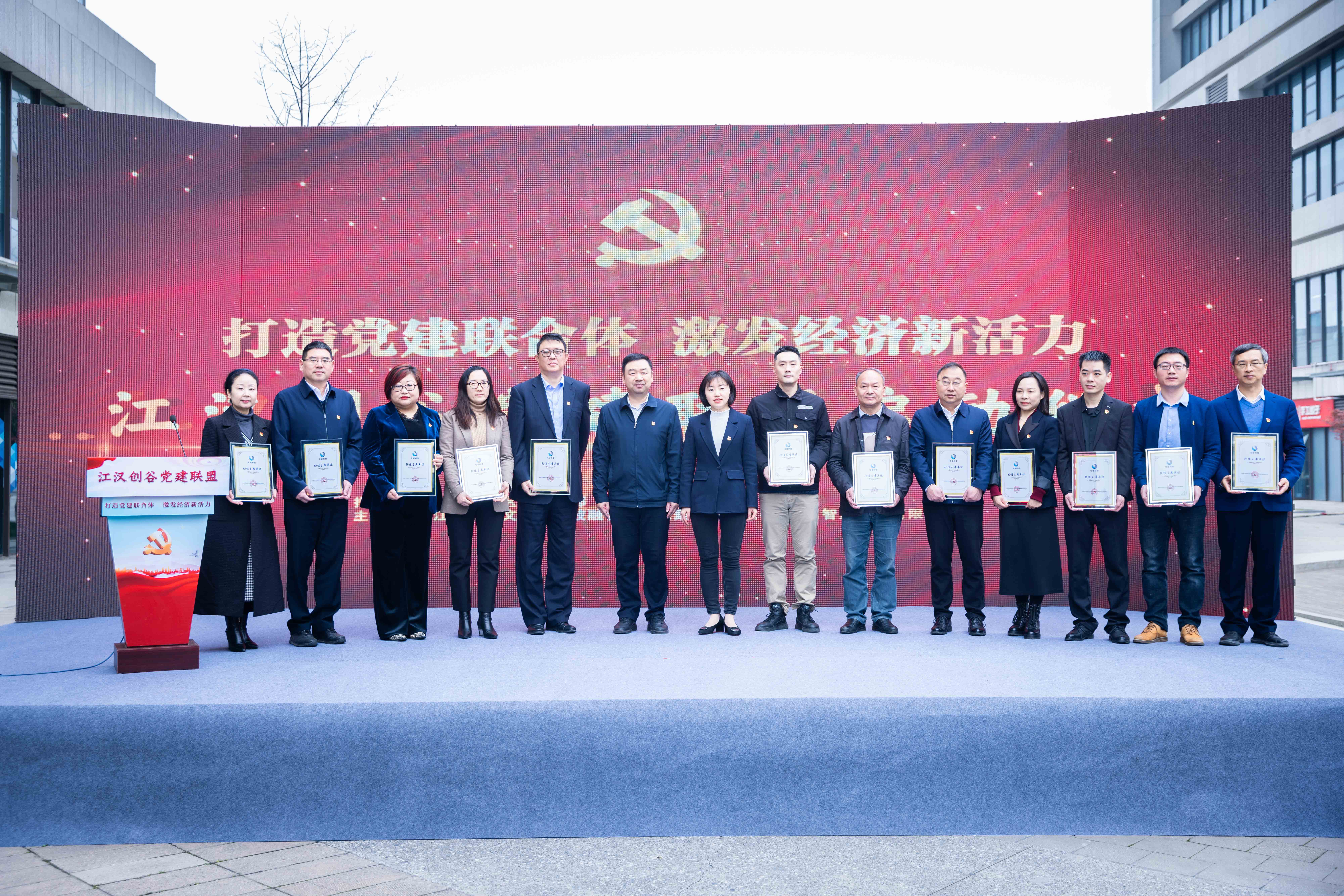 深入貫徹落實新時代黨的建設總要求和黨的組織路線,切實夯實 基層黨建基礎,解決企業困難,優化營商環境,促進經濟發展,江漢經濟開發區工委決定成立黨建聯盟,于 2023 年 3 月 29 日上午舉辦“江漢經濟開發區黨建聯盟啟動儀式”活動,湖北中鋼聯冶金工程有限公司黨支部代表金巍同志參加了本次活動,并當選 12 家黨建聯盟輪值主席之一,江漢區委組織部胡金利部長、開發區工委楊棟書記給 12 家黨建聯盟輪值主席頒發了證書并合照。